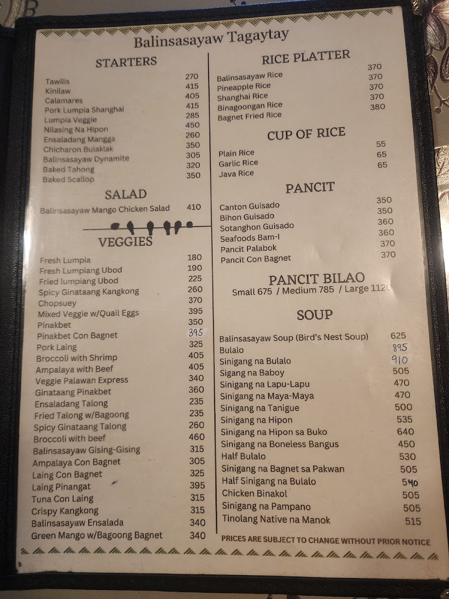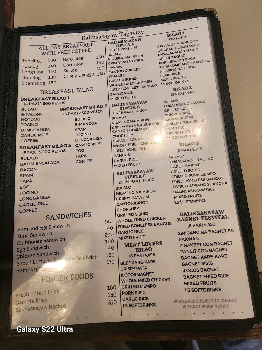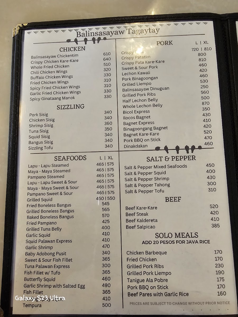 When you step into Balinsasayaw - Alfresco Dining & Cafe, you're in for more than just a meal; it's a full experience. Located along the Tagaytay-Nasugbu Highway in Tagaytay City, Cavite, this charming spot offers a welcoming alfresco setting where you can enjoy your food while taking in the fresh air and beautiful views. The menu here blends local flavors with a touch of creativity, ensuring that there's something for everyone. Whether you're craving hearty Filipino classics or looking to try something new, you’ll find plenty of options to satisfy your appetite. From fresh salads and flavorful appetizers to savory main dishes and indulgent desserts, each plate is crafted with care, using the best ingredients. Every visit promises not only delicious food but also a relaxing atmosphere, perfect for sharing a meal with friends or family. It's the ideal place to enjoy comforting dishes in a laid-back, open-air setting.